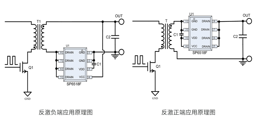 SP6518F是一顆高性能的開關電源次級側同步整流控制電路。在低壓大電流開關電源應用中,輕松滿足6級能效,是理想的超低導通壓降整流器件的解決方案。芯片可支持高達150KHz的開關頻率應用,并且支持CCM / QR / DCM等開關電源工作模式應用,其極低導通壓降產生的損耗遠小于肖特基二極管的導通損耗,極大提高了系統的轉換效率,大幅降低了整流器件的溫度。